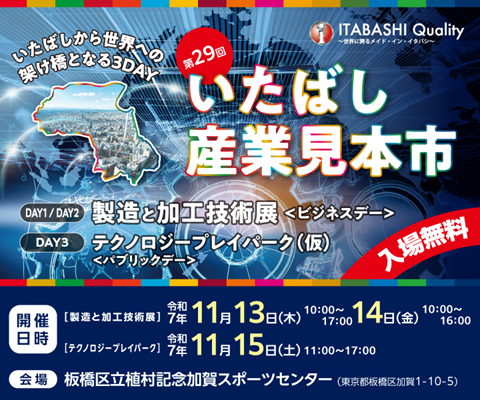 株式会社エネプロは、2025年11月13日(木)~11月14日(金)、板橋区・いたばし産業見本市実行委員会主催の「いたばし産業見本市 」に出展いたします。